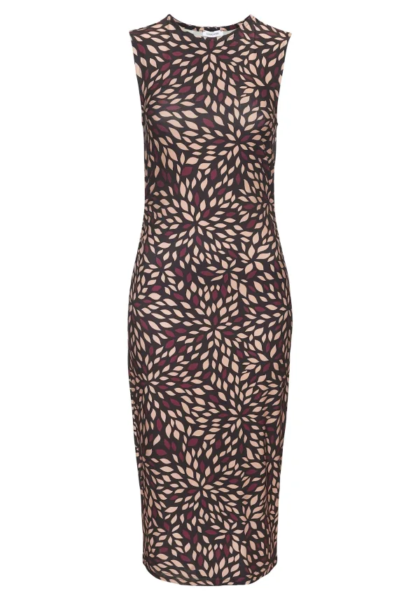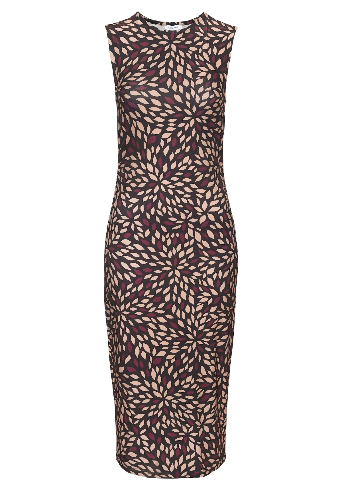 Design: Gevoerde zoom/rand, Verborgen rits; Type sluiting: Ritssluiting; Halstype: Ronde hals; Motief: Bloemenprint; Details: Gedrapeerd; Extra's: All-over patroon, Gladde stof; Lengte: 3/4 lengte; Snit: Figuur omarmend; Pasvorm: Aansluitende pasvorm; Armlengte: Mouwloos