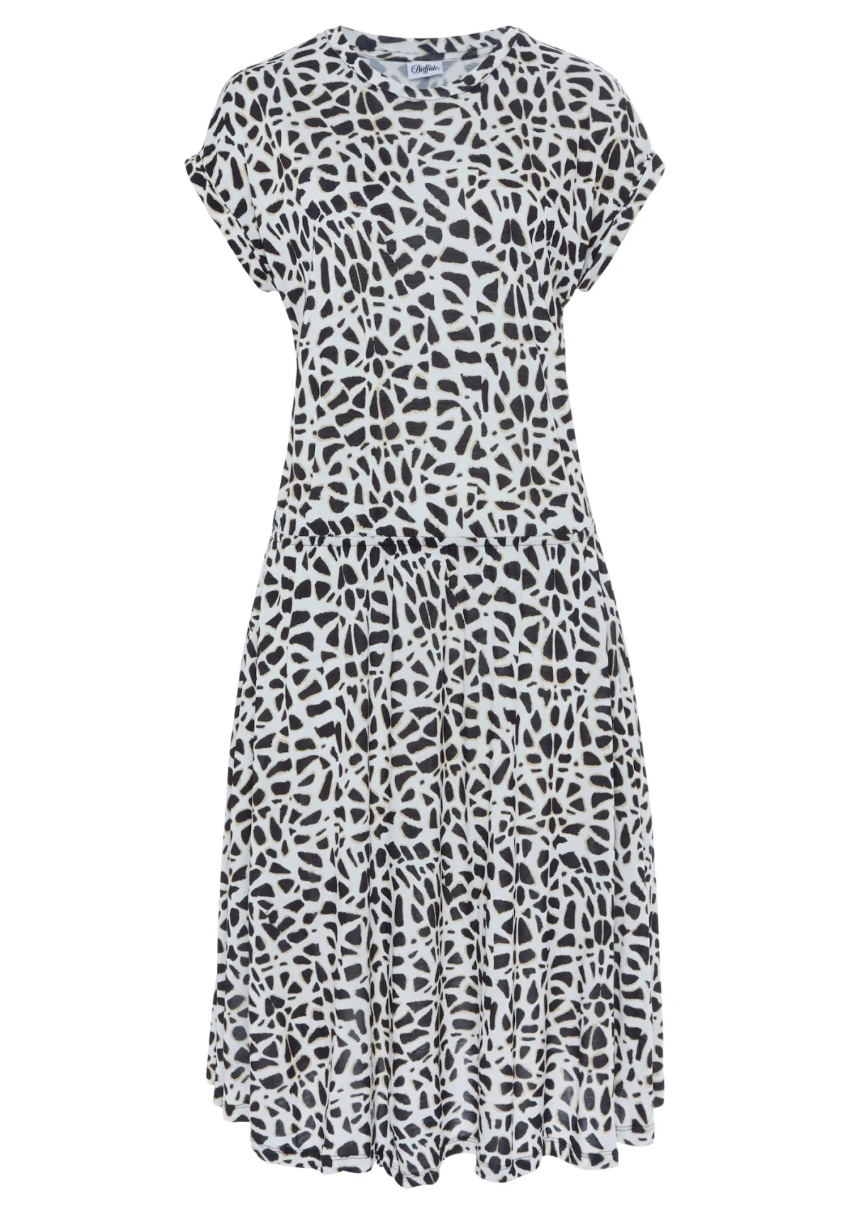 Design: Gevoerde zoom/rand, Gesneden mouw, Zakken aan de zijkant; Materiaal: Jersey; Halstype: Ronde hals; Motief: Dierenprint; Soort bandjes: Normale bandjes; Details: Volant, Gedrapeerd; Extra's: All-over patroon; Lengte: 3/4 lengte; Pasvorm: Normale pasvorm; Armlengte: Kwartmouw