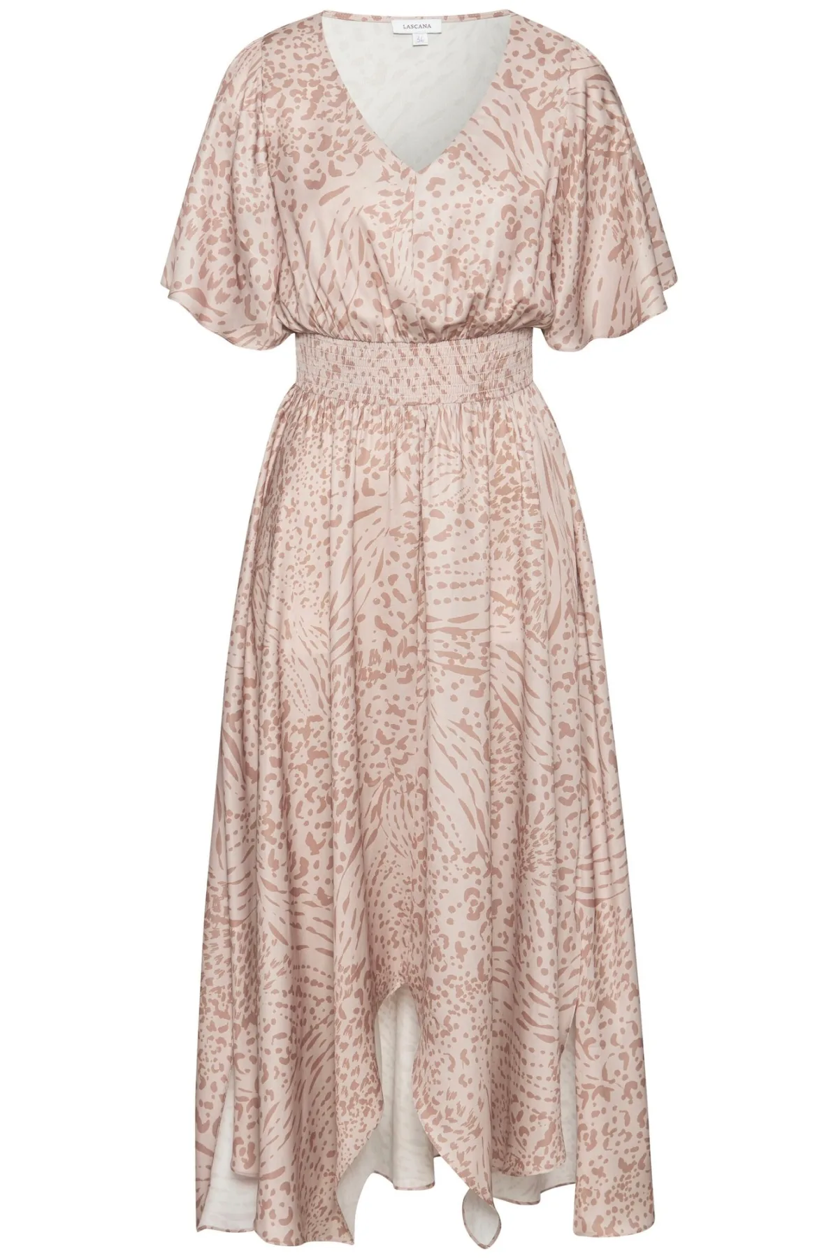 Design: Asymmetrische zoom, Vleermuismouwen, Tailleband; Type sluiting: Gesloten; Halstype: V-hals; Motief: Dierenprint; Details: Volant, Plooien, Gedrapeerd; Extra's: All-over patroon, Op staal naden; Lengte: 7/8 lengte; Pasvorm: Losse pasvorm; Armlengte: Kwartmouw