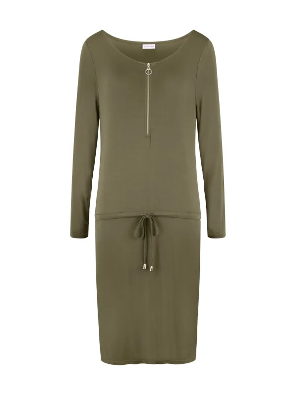 Design: Gevoerde zoom/rand, Rechte zoom, Halve rits; Type sluiting: Ritssluiting; Materiaal: Viscose; Halstype: Ronde hals; Motief: Effen; Extra's: Voelt zacht aan; Lengte: Knielengte; Pasvorm: Normale pasvorm; Armlengte: Lange mouw