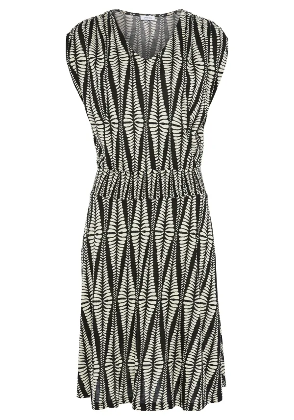 Design: Gevoerde zoom/rand, Zonder sluiting; Materiaal: Viscose; Halstype: V-hals; Soort bandjes: Brede bandjes; Extra's: All-over patroon; Lengte: Knielengte; Pasvorm: Normale pasvorm; Armlengte: Mouwloos