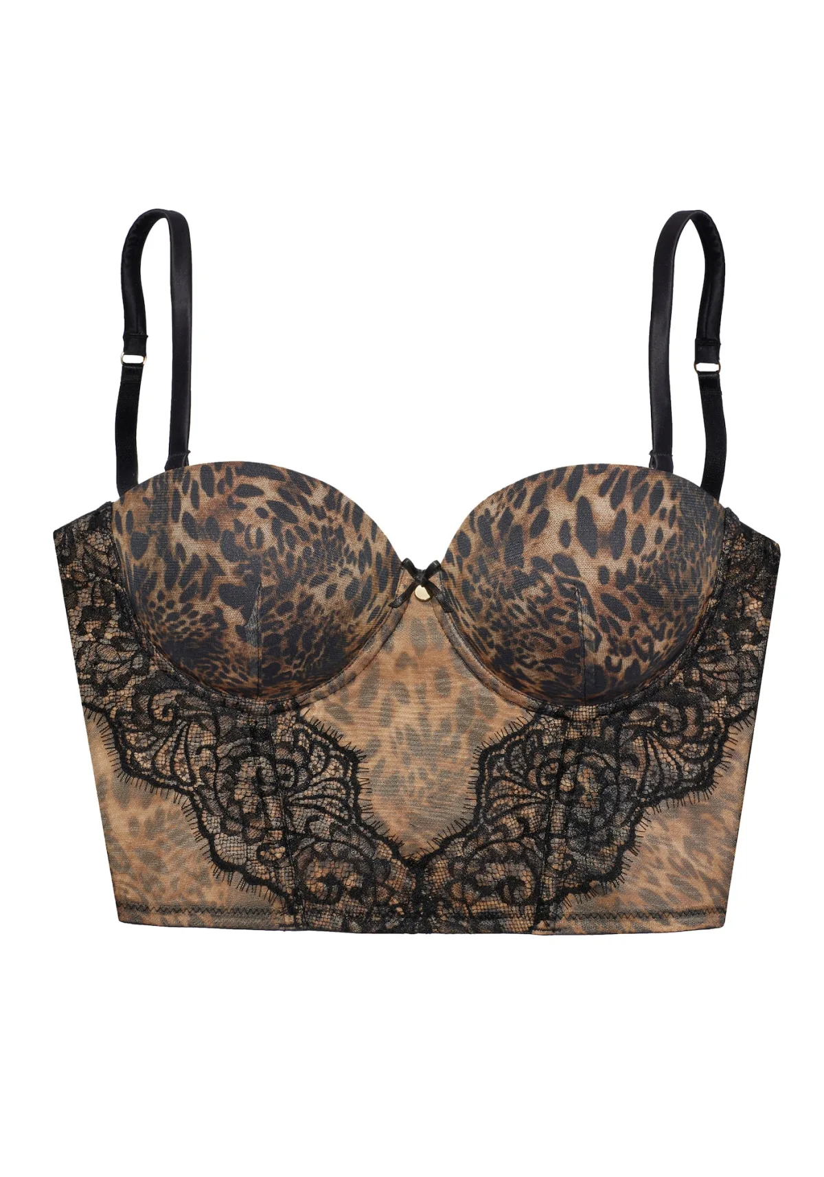 Cup soorten: Demi cup bh, Uitneembare cups; Soort bandjes: Normale bandjes; Beugel: Met beugel; Type sluiting: Haakjes; Motief: Dierenprint; Details: Kant; Extra's: Verstelbare bandjes, All-over patroon, Applicaties