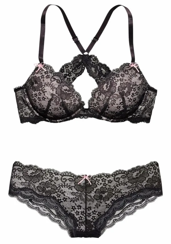 Cup soorten: Full cup bh; Soort bandjes: Sportrug/kruisende bandjes; Bh/bikini type: Push-up; Beugel: Met beugel; Motief: Effen; Details: Kant; Extra's: Transparant, Verstelbare bandjes; Aantal per set: 2-delig