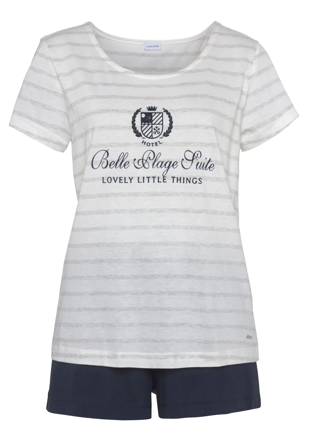 Specificaties: LASCANA Pyjama beige / nachtblauw / wit