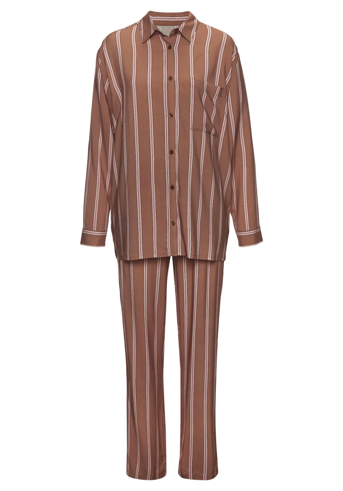 LASCANA Pyjama bruin / aubergine / lichtroze / wit