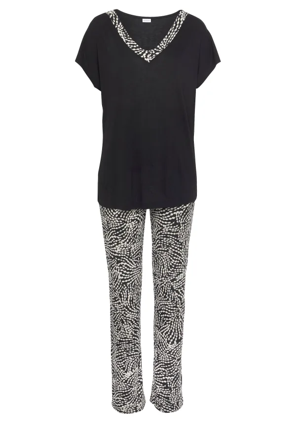 Specificaties: LASCANA Pyjama zwart / wit