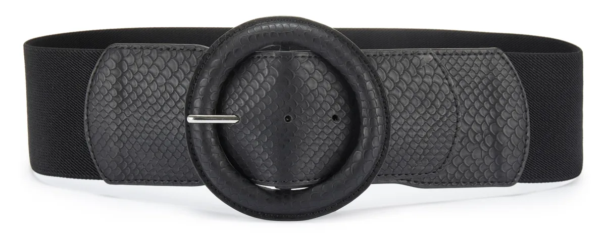 Design: Rechte zoom; Type sluiting: Gesp; Motief: Effen; Materiaal: Imitatieleer, Textiel; Type riem: Tailleriem; Extra's: Stevige stof, Reptile look