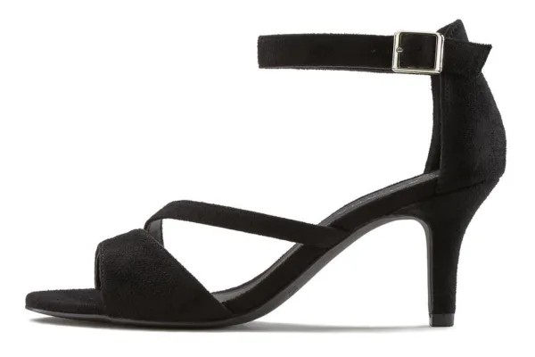 Design: Verstelbare riemen, Versterkte hak; Type sluiting: Riemsluiting; Type hak: Stiletto; Motief: Effen; Materiaal: Imitatieleer; Schoenneus: Open toe; Extra's: Op staal naden, Velours look; Hakhoogte: Middelhoge hak (3-7 cm)