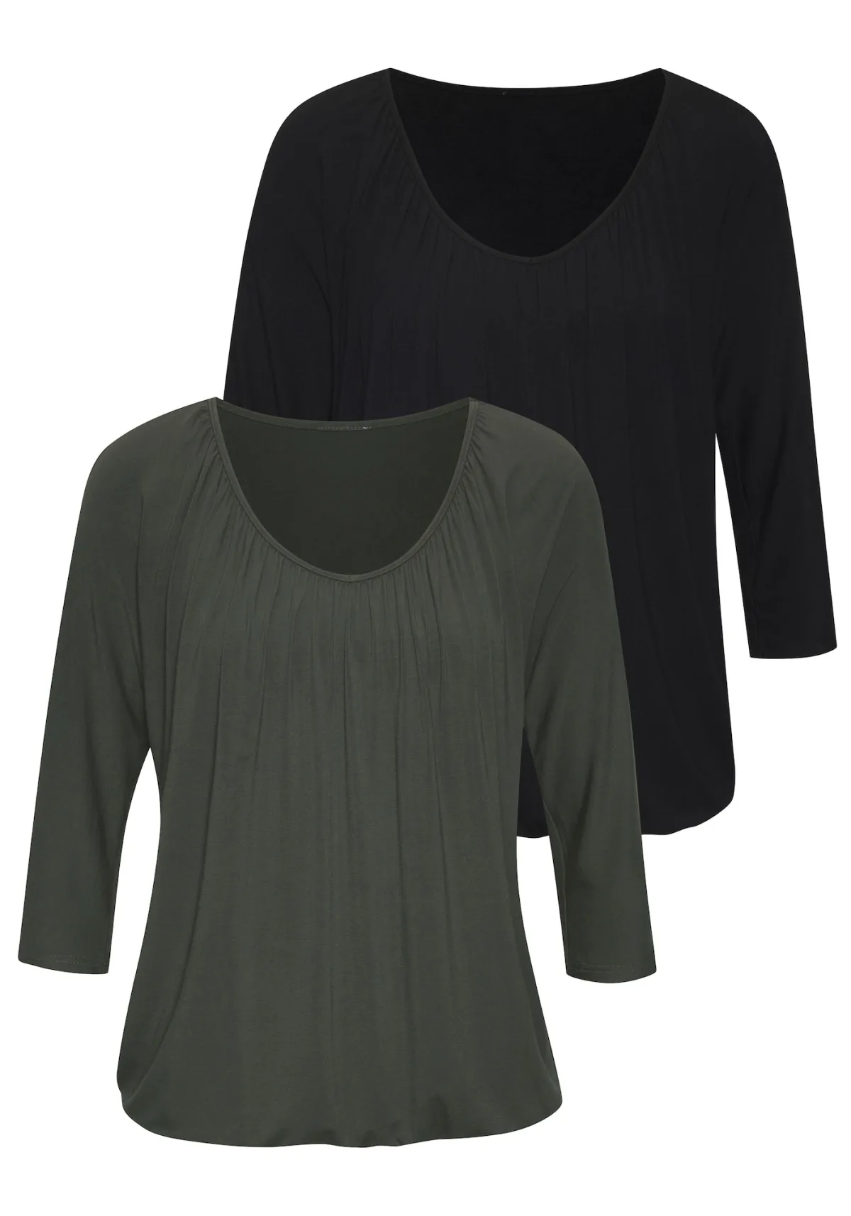Materiaal: Jersey; Halstype: Ronde hals; Motief: Effen; Details: Gedrapeerd; Pasvorm: Normale pasvorm; Aantal: 2 Pack; Armlengte: Driekwart mouw; Lengte: Normale lengte
