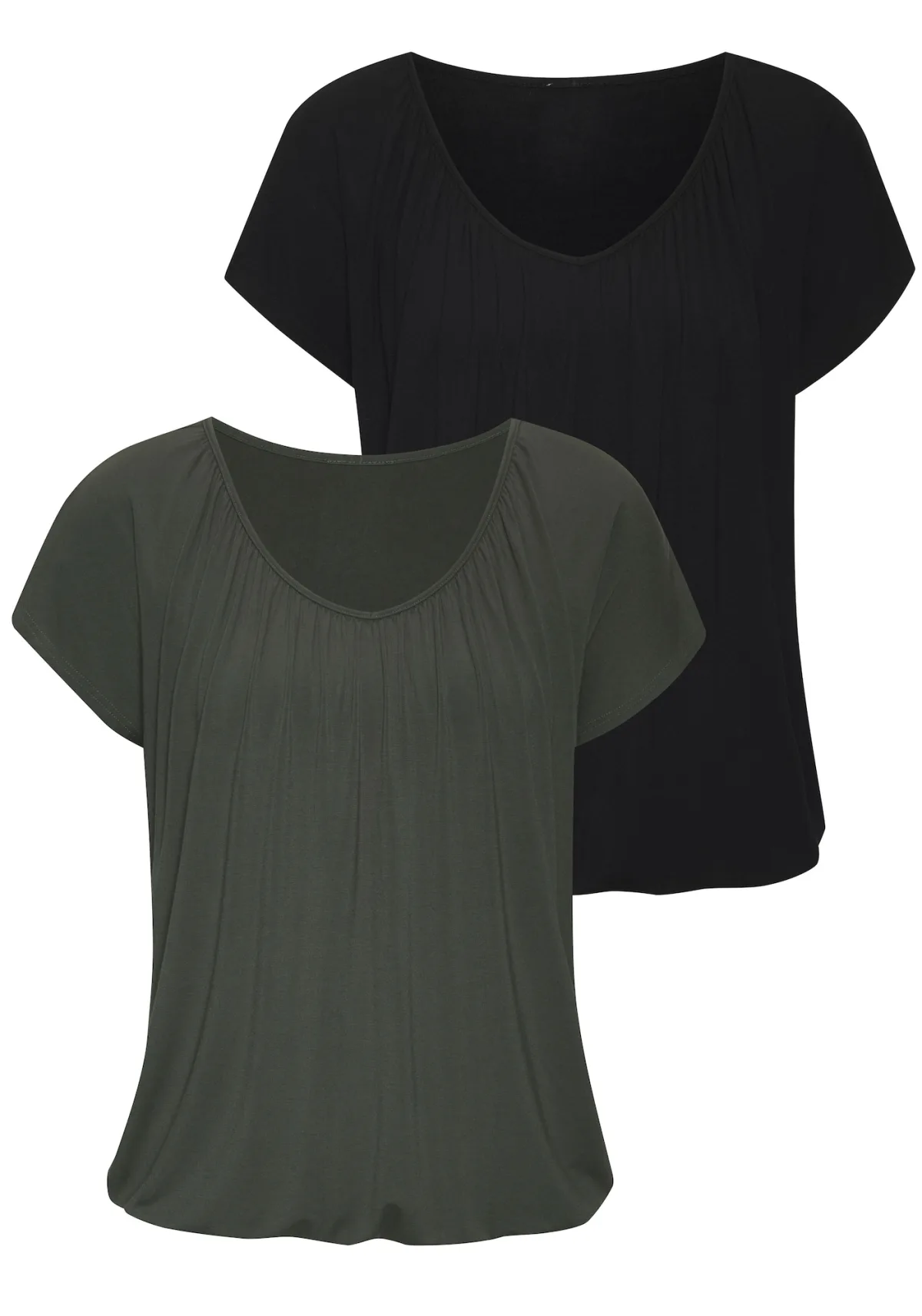 Design: Elastische taille/zoom; Materiaal: Jersey; Halstype: V-hals; Motief: Effen; Details: Gedrapeerd; Extra's: Op staal naden, Gladde stof, Voelt zacht aan; Pasvorm: Normale pasvorm; Aantal: 2 Pack; Armlengte: Kwartmouw; Lengte: Normale lengte