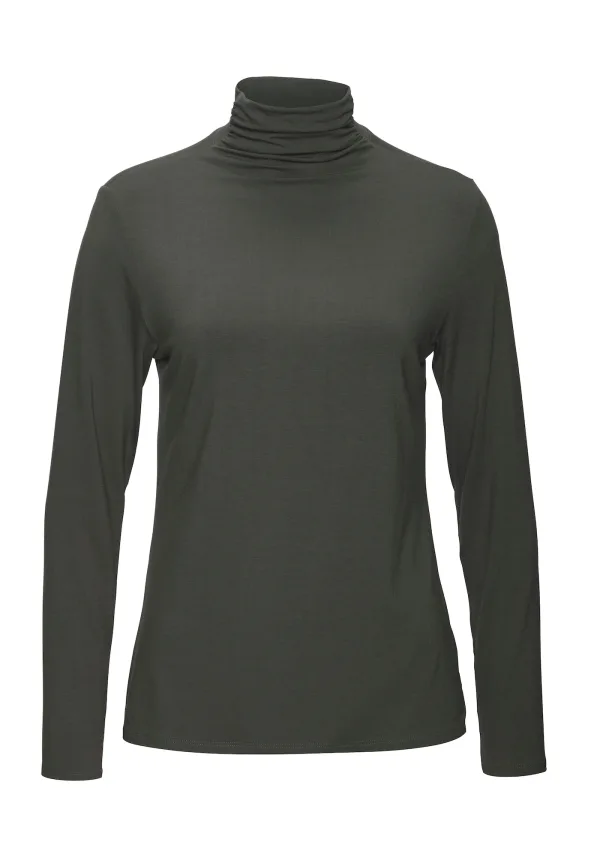 Materiaal: Jersey; Halstype: Opstaande kraag; Motief: Effen; Details: Gedrapeerd; Pasvorm: Aansluitende pasvorm; Armlengte: Lange mouw; Lengte: Normale lengte