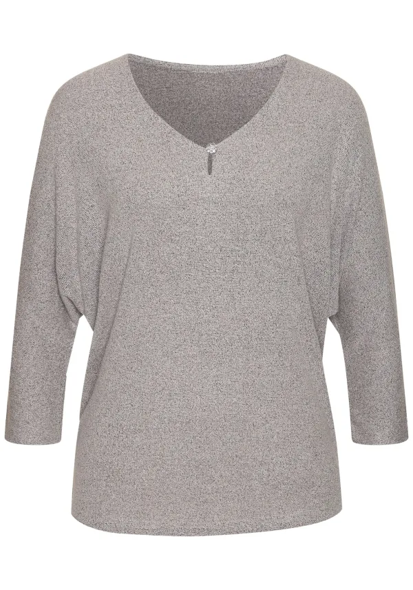 Design: Vleermuismouwen; Type sluiting: Knoopsluiting; Materiaal: Jersey; Halstype: V-hals; Motief: Mélange; Details: Cut-outs; Extra's: Voelt zacht aan; Pasvorm: Normale pasvorm; Armlengte: Driekwart mouw; Lengte: Normale lengte