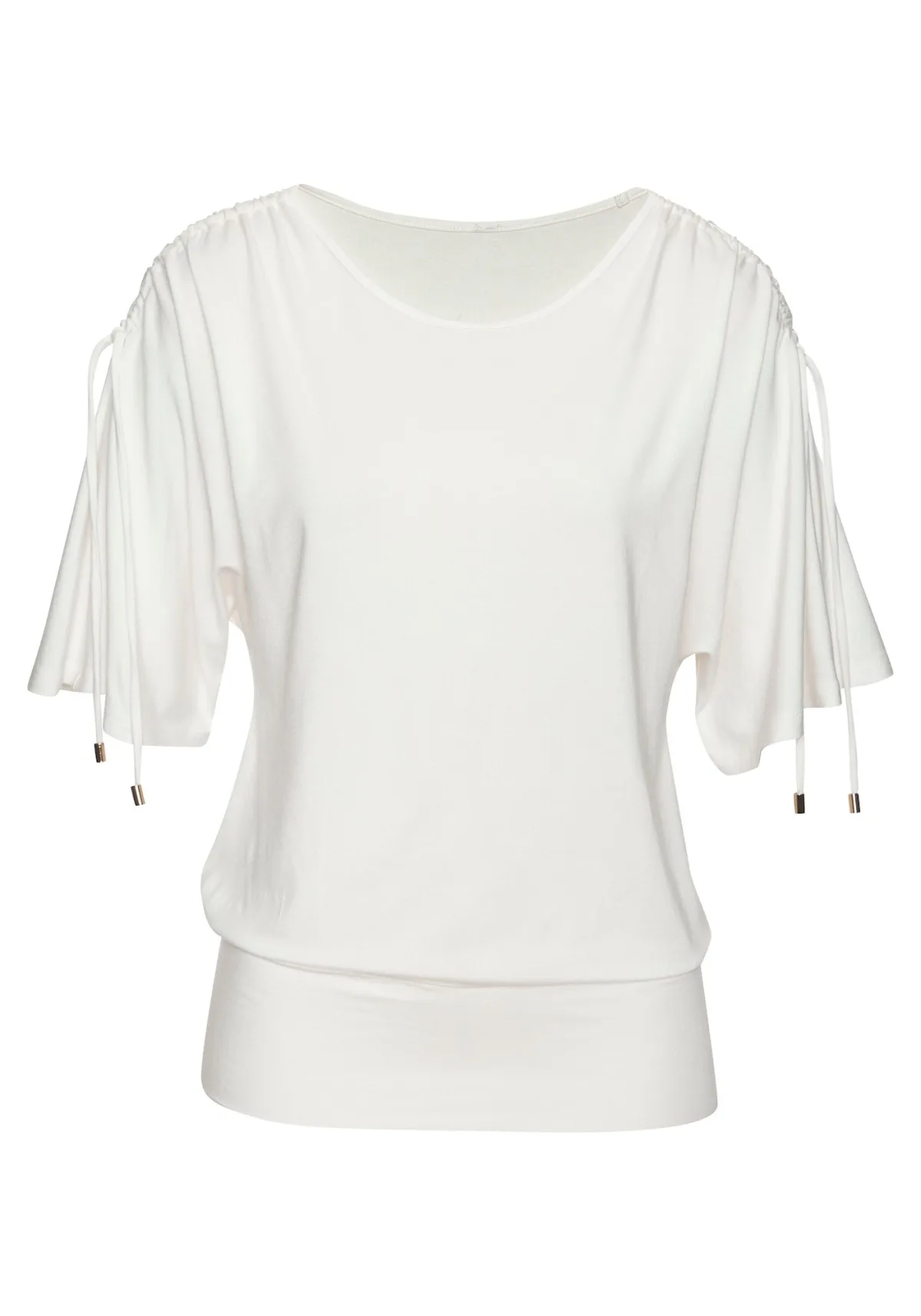 Design: Gevoerde zoom/rand; Materiaal: Jersey; Halstype: Ronde hals; Motief: Effen; Details: Gedrapeerd; Extra's: Voelt zacht aan; Pasvorm: Normale pasvorm; Armlengte: Kwartmouw; Lengte: Normale lengte