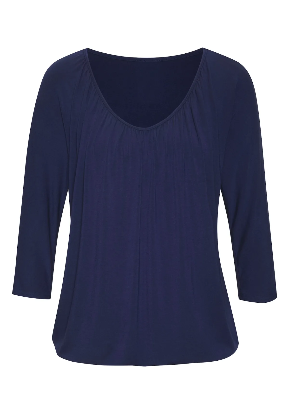 Materiaal: Viscose; Halstype: V-hals; Motief: Effen; Details: Gedrapeerd; Pasvorm: Normale pasvorm; Armlengte: Driekwart mouw; Lengte: Normale lengte
