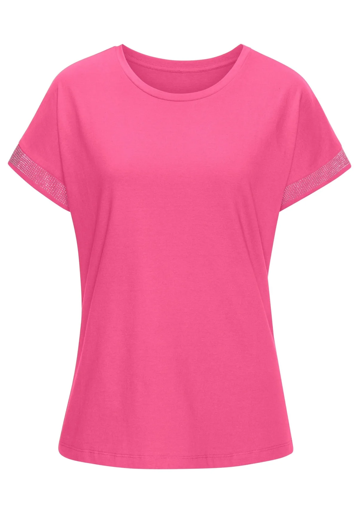 Design: Gevoerde zoom/rand, Rechte zoom; Materiaal: Jersey; Halstype: Ronde hals; Motief: Effen; Details: Sierstenen; Extra's: Met halfedelstenen, Voelt zacht aan; Pasvorm: Losse pasvorm; Armlengte: Kwartmouw; Lengte: Normale lengte