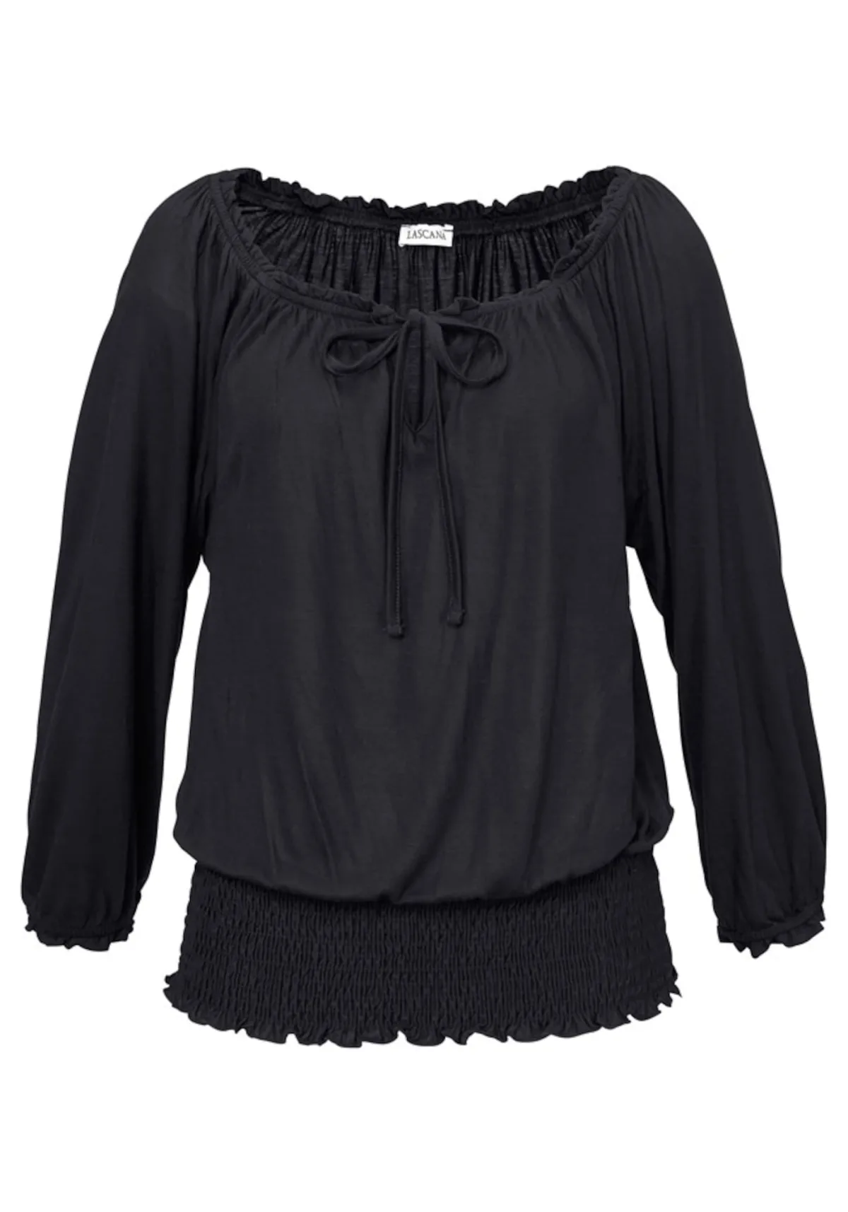 Design: Wijde taille, Elastische taille/zoom, Strapless/off-shoulder, Om te knopen/binden, Overige kragen; Materiaal: Jersey, Viscose; Halstype: Carmen hals; Motief: Effen; Details: Gedrapeerd; Extra's: Op staal naden, Gladde stof, Lichte stof, Voelt zacht aan; Pasvorm: Normale pasvorm; Armlengte: Lange mouw; Lengte: Normale lengte
