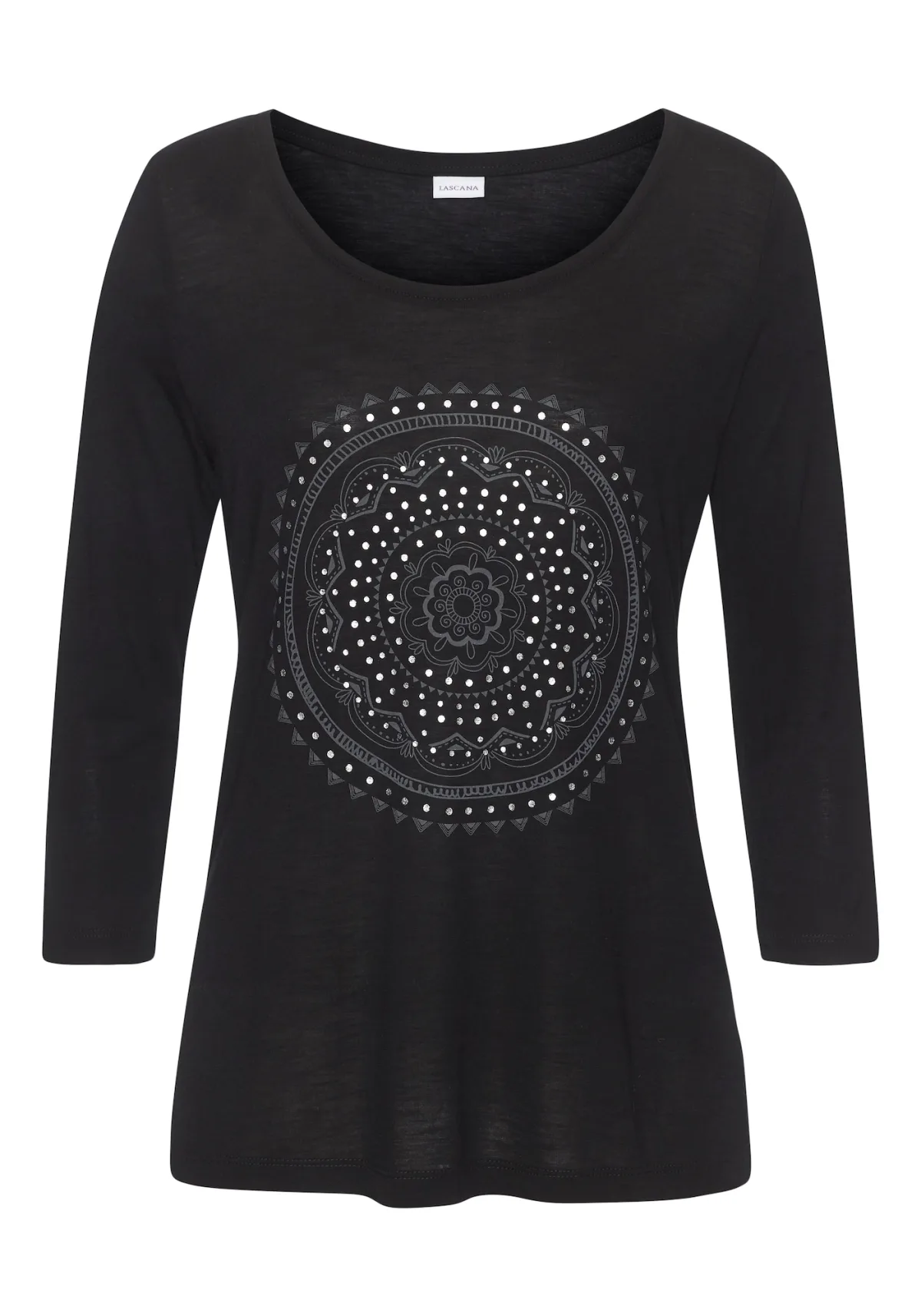 Design: Gevoerde zoom/rand; Materiaal: Jersey; Halstype: Ronde hals; Motief: Motiefprint; Details: Sierstenen; Extra's: Glitterend; Pasvorm: Normale pasvorm; Armlengte: Driekwart mouw; Lengte: Normale lengte