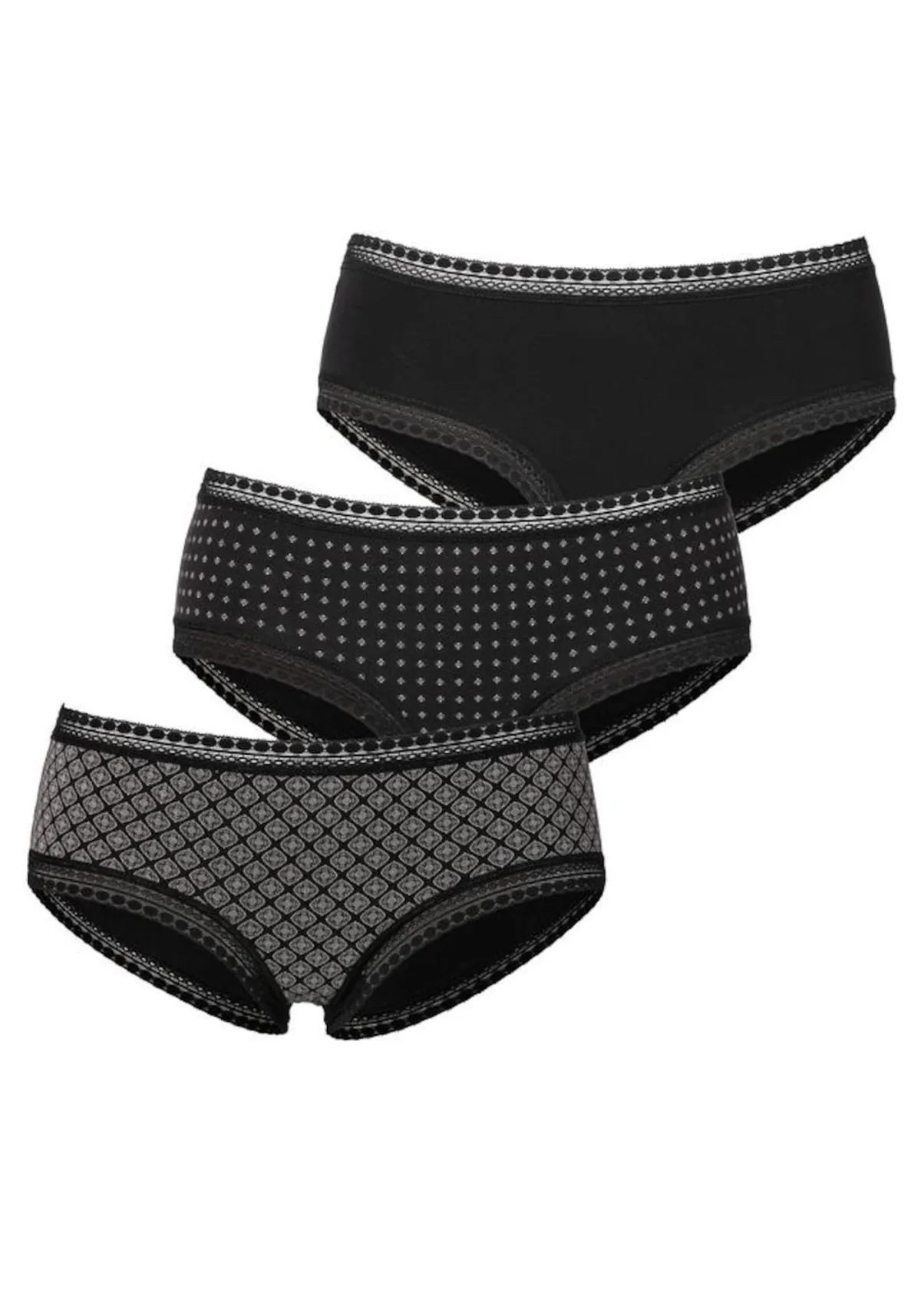 Materiaal: Katoen; Details: Kant; Extra's: All-over patroon, Luchtige stof; Aantal: 3 Pack; Taillehoogte: Mid waist