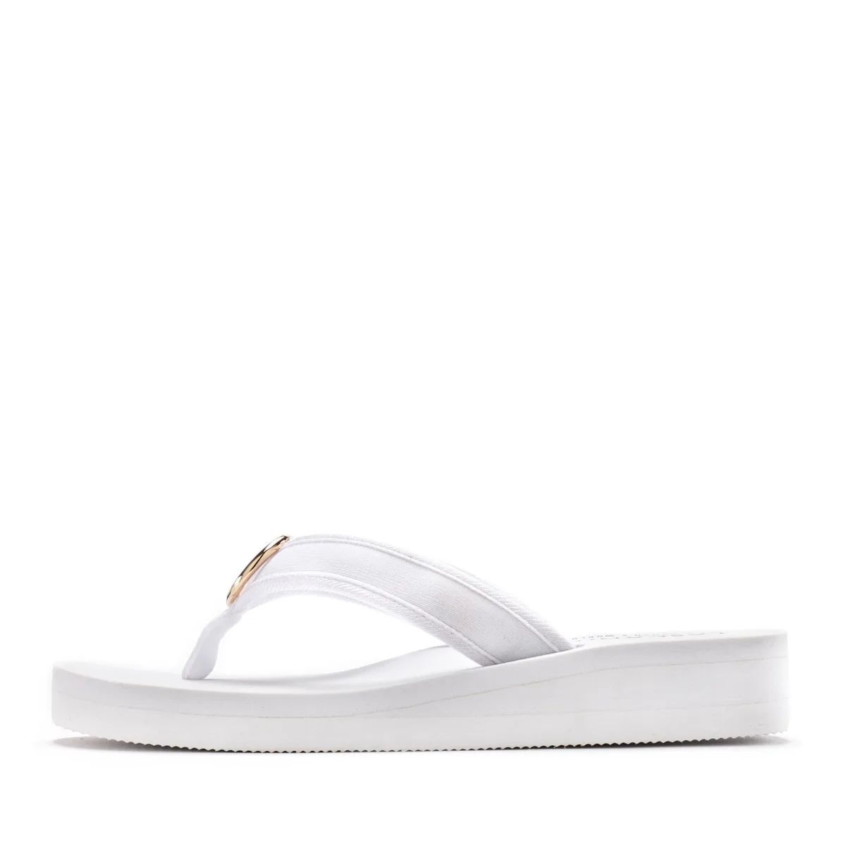 Design: Profielzolen, T-strap; Type sluiting: Slip; Motief: Effen; Plateau: Met plateau; Materiaal: Textiel; Schoenneus: Open toe; Extra's: Label plaatje, Gewatteerde rand; Hakhoogte: Platte hak (0-3 cm)