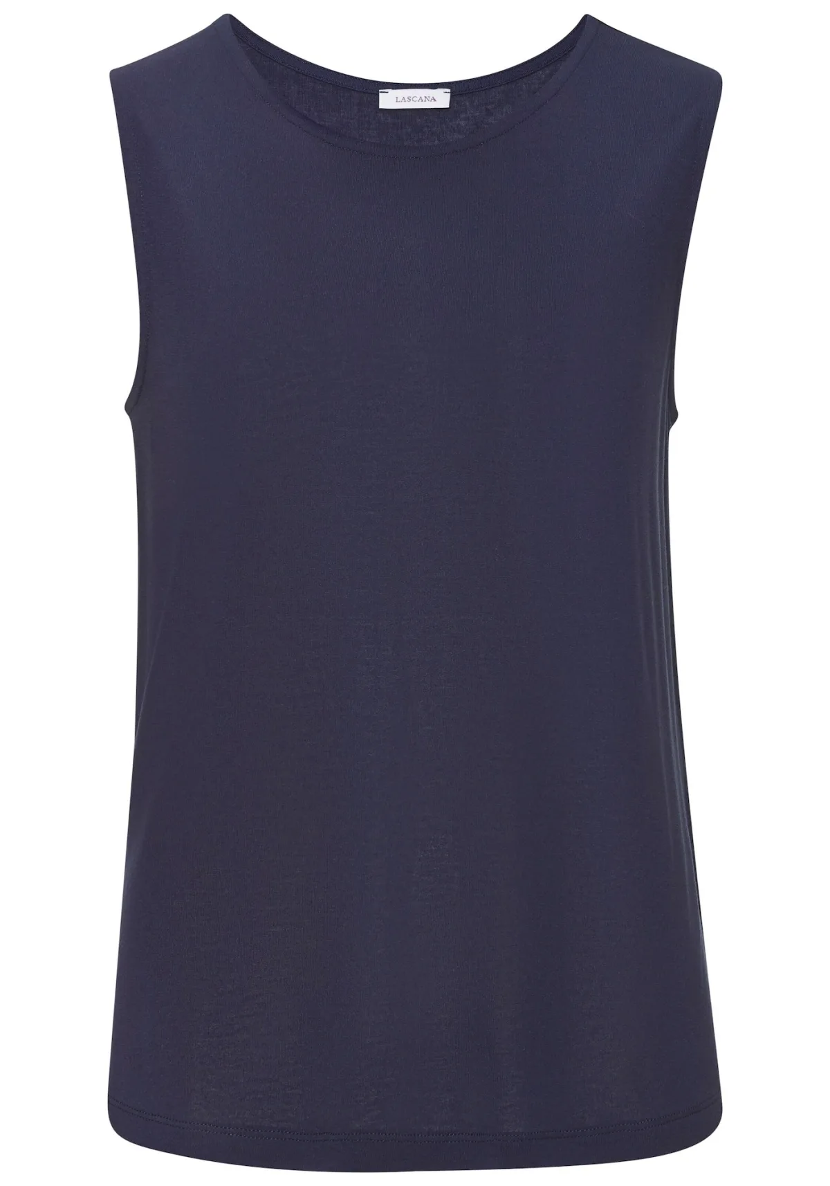 Design: Gevoerde zoom/rand, Rechte zoom; Materiaal: Viscose; Halstype: Ronde hals; Motief: Effen; Soort bandjes: Brede bandjes; Extra's: Op staal naden, Gladde stof; Pasvorm: Normale pasvorm; Armlengte: Mouwloos; Lengte: Normale lengte