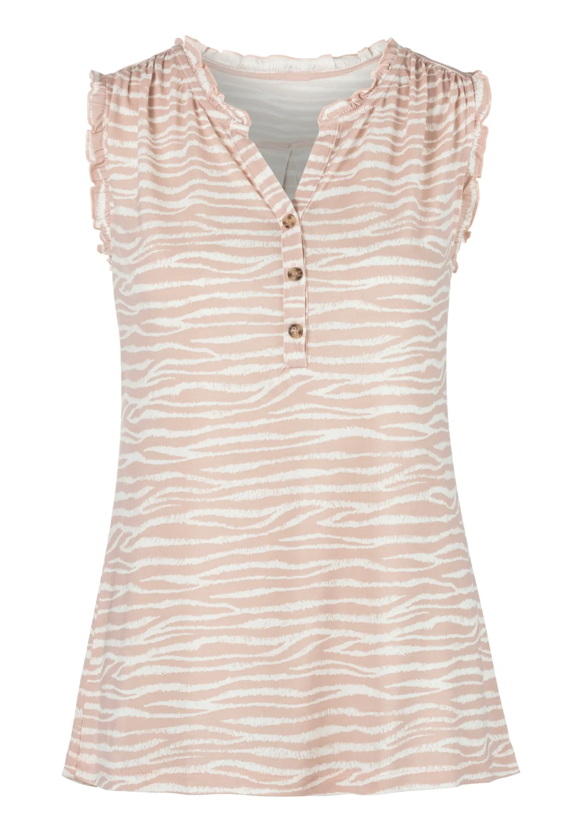 Materiaal: Viscose; Halstype: V-hals; Motief: Dierenprint; Soort bandjes: Brede bandjes; Details: Ruches, Gedrapeerd; Pasvorm: Normale pasvorm; Armlengte: Mouwloos; Lengte: Normale lengte