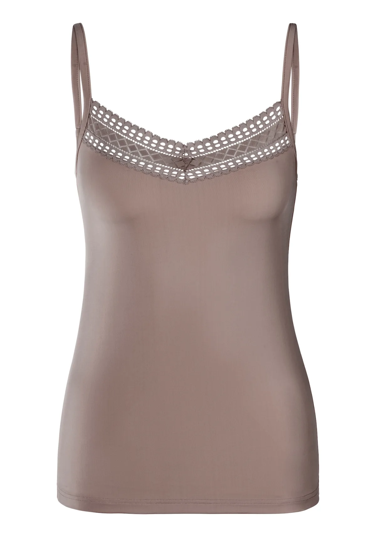 Materiaal: Jersey; Halstype: V-hals; Motief: Effen; Soort bandjes: Spaghettibandjes; Details: Kant; Pasvorm: Normale pasvorm; Armlengte: Mouwloos; Lengte: Normale lengte