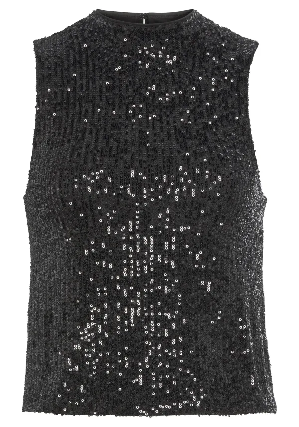 Design: Keyholesluiting; Halstype: Opstaande kraag; Motief: Effen; Details: Cut-outs, Pailletten; Extra's: Glinsterend; Pasvorm: Slanke pasvorm; Armlengte: Mouwloos; Lengte: Normale lengte