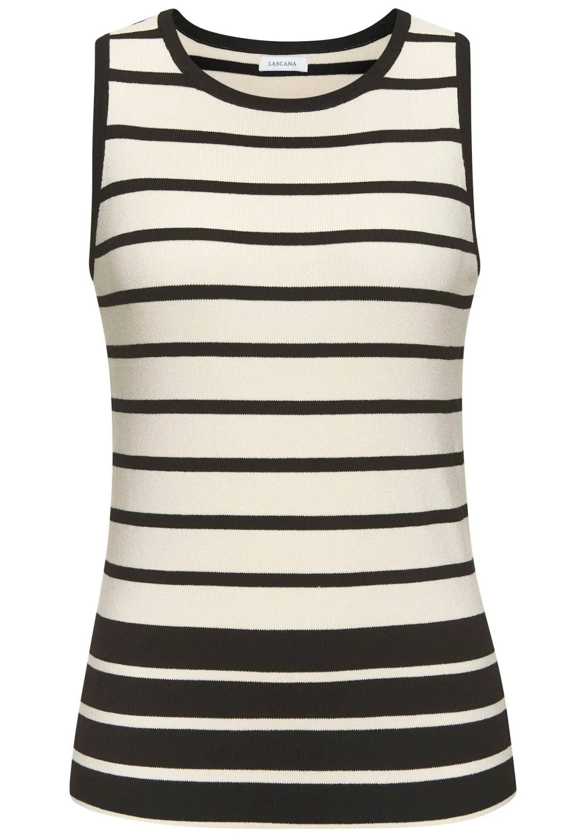 Design: Ingelegde zoom/rand, Rechte zoom; Materiaal: Knitwear; Halstype: Ronde hals; Motief: Gestreept; Soort bandjes: Brede bandjes; Pasvorm: Slanke pasvorm; Armlengte: Mouwloos; Lengte: Normale lengte