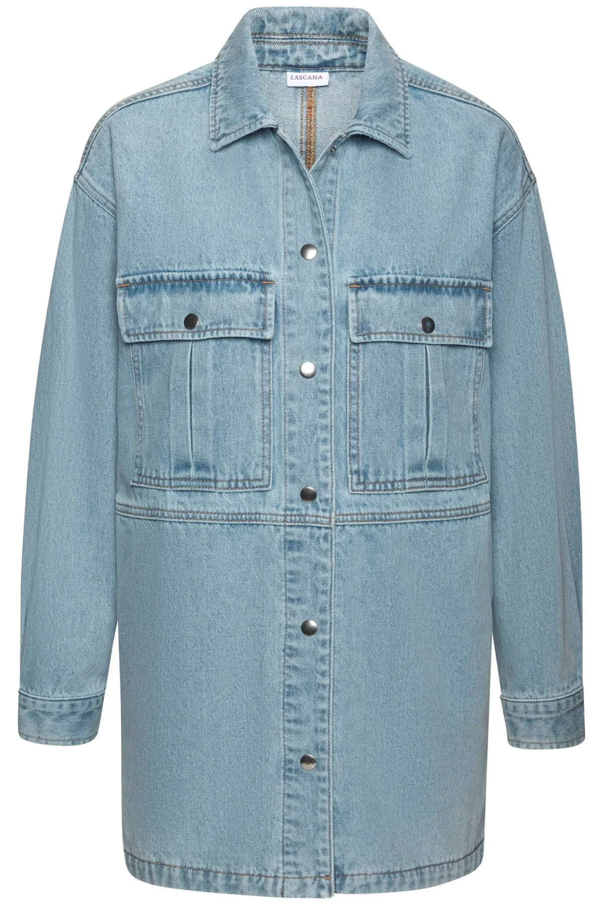 Design: Drukknopen, Oversized, Zijdelingse inkepingen, Borstzak, Zakken aan de zijkant; Type sluiting: Drukknoop; Voering: Niet gevoerd; Materiaal: Denim; Motief: Effen; Extra's: Contrasterende naden; Pasvorm: Losse pasvorm