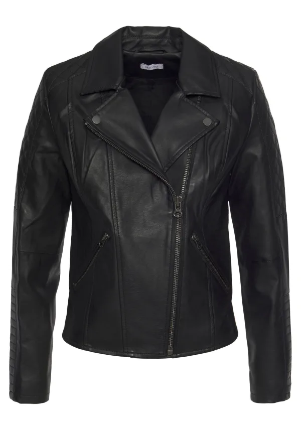 Design: Vierkant model, Revers kraag, Ritszakken aan de zijkant; Type sluiting: Ritssluiting; Type jas: Bikerjack; Voering: Licht gevoerd; Materiaal: Imitatieleder; Motief: Effen; Extra's: Studs, Gladde stof, Stevige stof; Pasvorm: Aansluitende pasvorm