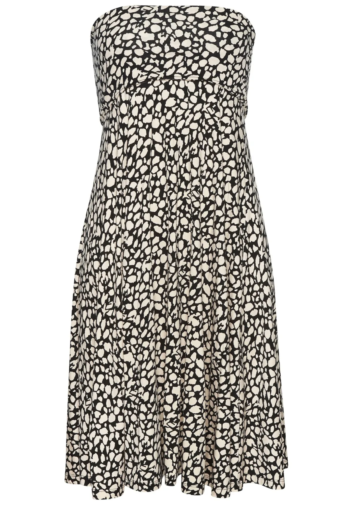 Design: Gevoerde zoom/rand; Materiaal: Viscose; Soort bandjes: Bandeau; Details: Plooien, Gedrapeerd; Extra's: All-over patroon; Lengte: Knielengte; Pasvorm: Losse pasvorm; Armlengte: Mouwloos
