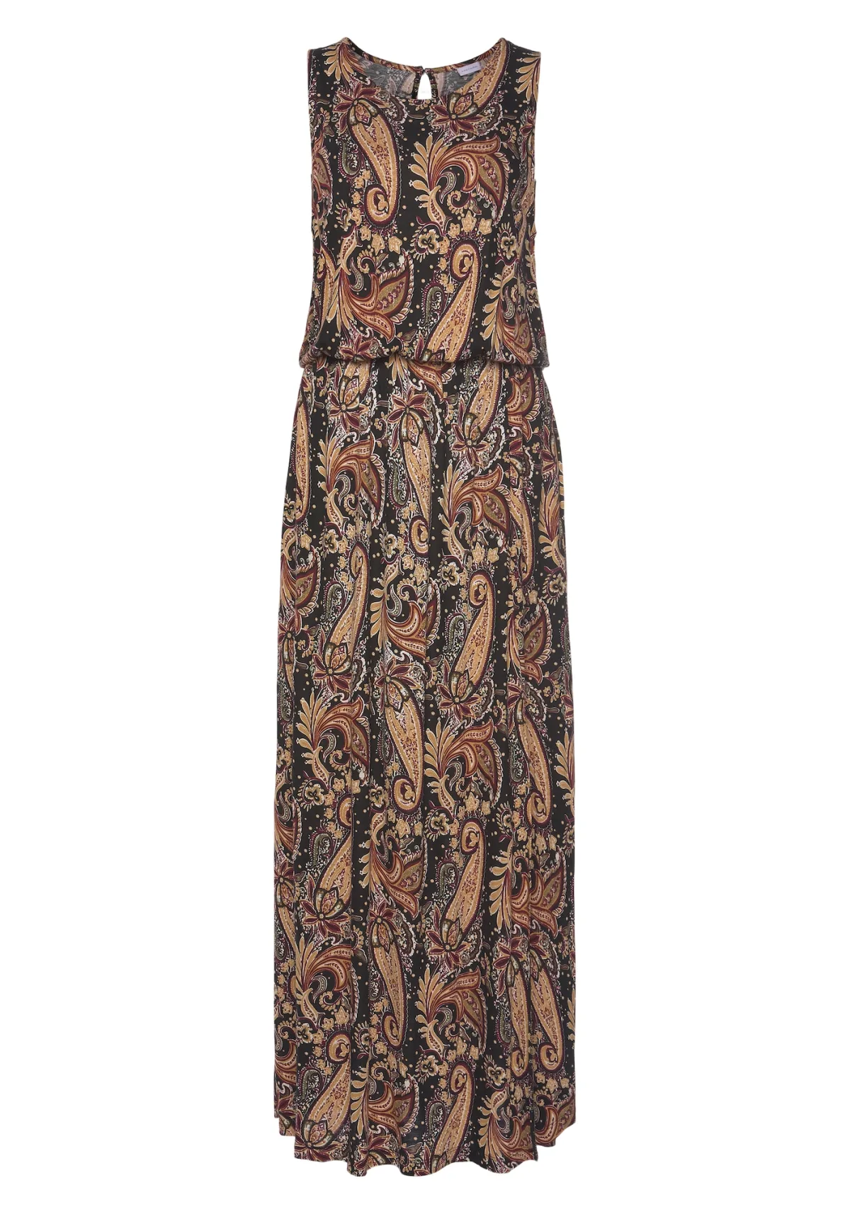 Design: Keyholesluiting, Zijdelingse inkepingen, Tailleband; Materiaal: Viscose; Halstype: Ronde hals; Motief: Paisley; Soort bandjes: Normale bandjes; Details: Gedrapeerd; Extra's: All-over patroon, Koele grip; Lengte: Lang/maxi; Pasvorm: Normale pasvorm; Armlengte: Mouwloos