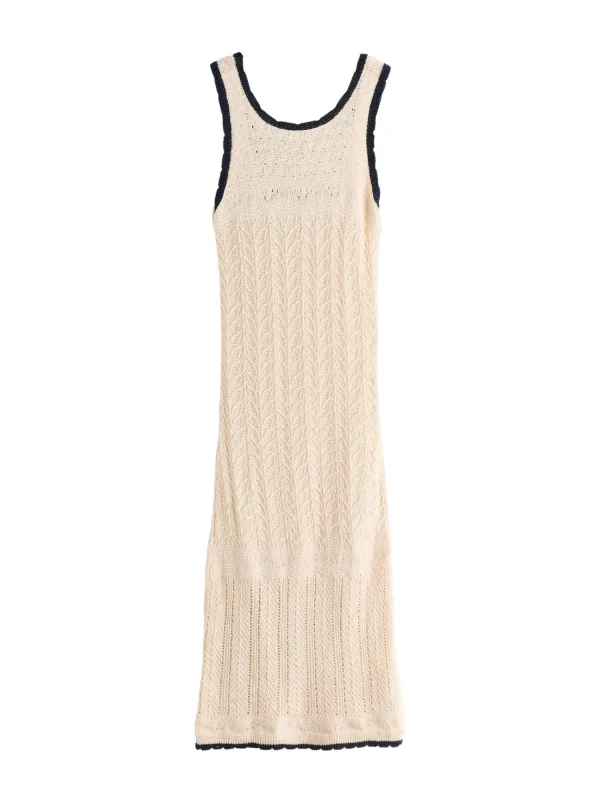 Design: Rechte zoom, Rug inkeep; Materiaal: Knitwear; Halstype: Ronde hals; Motief: Effen; Soort bandjes: Normale bandjes; Details: Mesh; Extra's: Voelt zacht aan; Lengte: Lang/maxi; Snit: Getailleerd; Pasvorm: Slanke pasvorm; Armlengte: Mouwloos