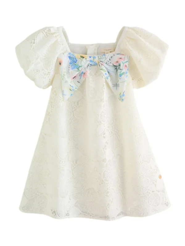 Design: Gevoerde zoom/rand, Pofmouwen; Type sluiting: Ritssluiting; Halstype: Carréhals; Motief: Effen; Details: Kant, Gedrapeerd; Extra's: Applicaties; Lengte: Knielengte; Snit: Uitlopend; Pasvorm: Normale pasvorm; Armlengte: Kwartmouw