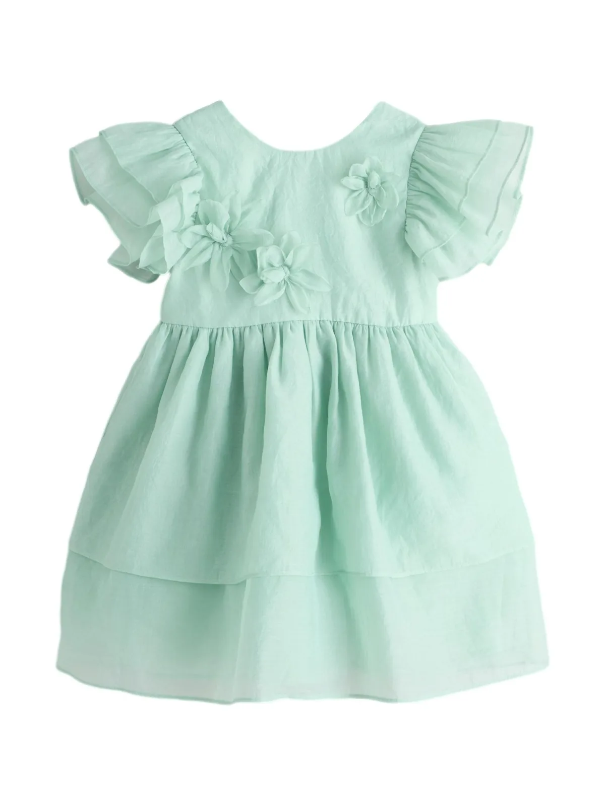 Design: Flare, Met onderjurk; Type sluiting: Knoopsluiting; Halstype: Open rug; Motief: Effen; Details: Volant, Gedrapeerd; Extra's: Applicaties, Gladde stof; Lengte: Knielengte; Pasvorm: Normale pasvorm; Armlengte: Kwartmouw