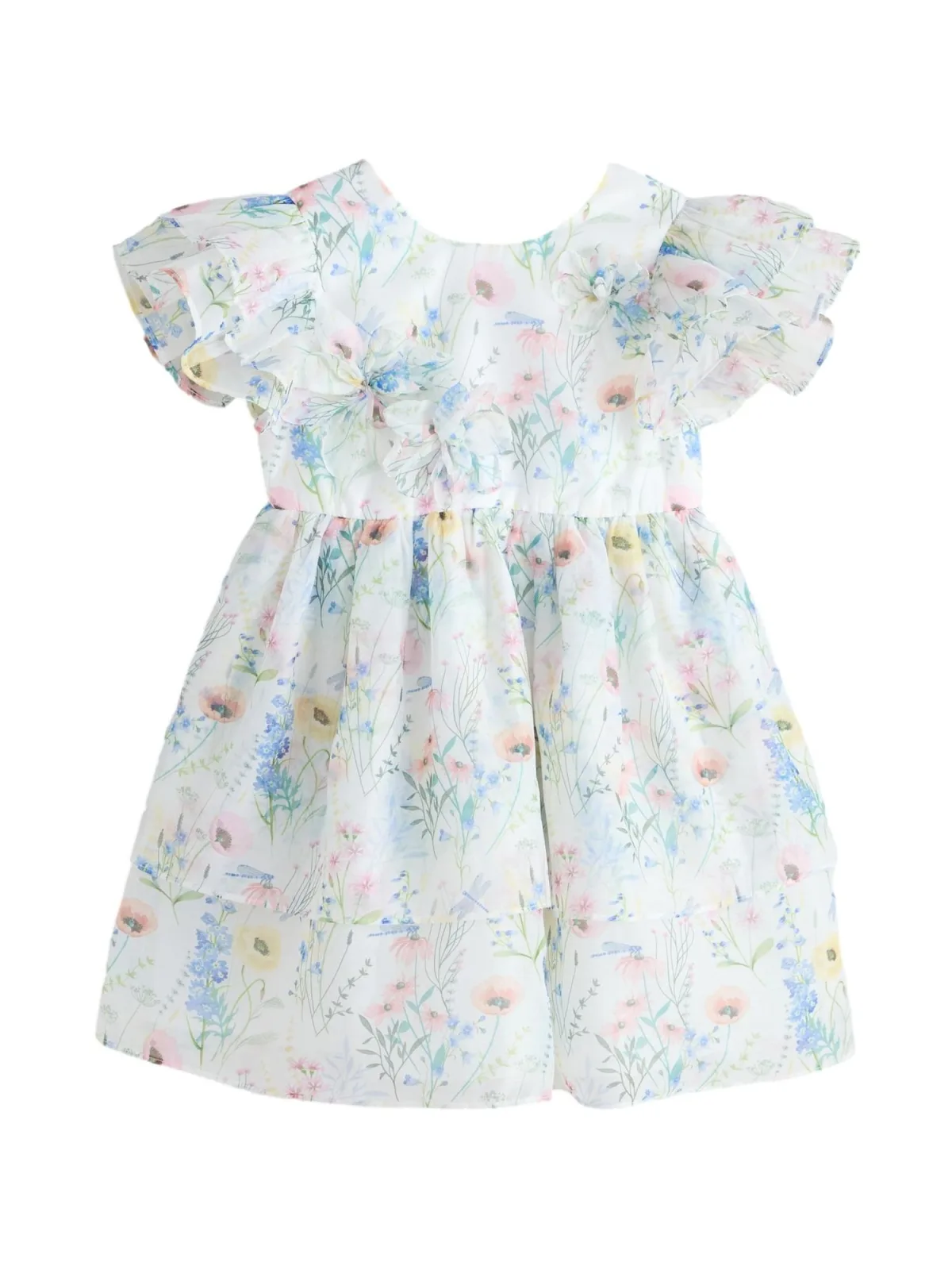 Design: Gevoerde zoom/rand, Knop placket; Type sluiting: Knoopsluiting; Halstype: Ronde hals; Motief: Bloemenprint; Details: Volant, Gedrapeerd; Extra's: All-over patroon, Applicaties, Gladde stof; Lengte: Kort/mini; Pasvorm: Normale pasvorm; Armlengte: Kwartmouw