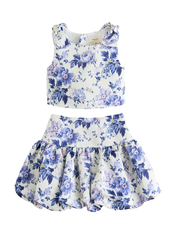 Design: Gevoerde zoom/rand; Motief: Bloemenprint; Extra's: All-over patroon; Aantal per set: 2-delig; Lengte: Kort/mini; Setinhalt Kleidung: Rock, Shirt; Pasvorm: Normale pasvorm; Armlengte: Mouwloos