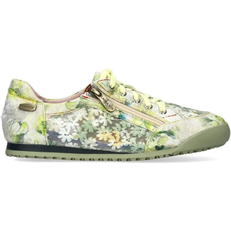 Artikel Tivanao 05 in kleur Jaune is een prachtige groene veterschoen, voor dames, van het merk Laura Vita. De zool is van rubber. De voering is leer. De voetwijdte is standaard.