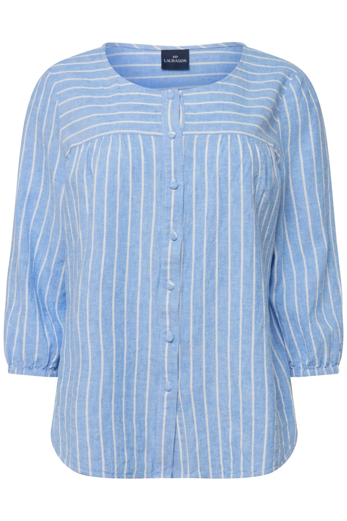 Design: Knop placket; Materiaal: Linnen; Motief: Gestreept; Kraag: Zonder kraag; Details: Gedrapeerd; Extra's: All-over patroon; Pasvorm: Normale pasvorm; Armlengte: Driekwart mouw; Lengte: Normale lengte