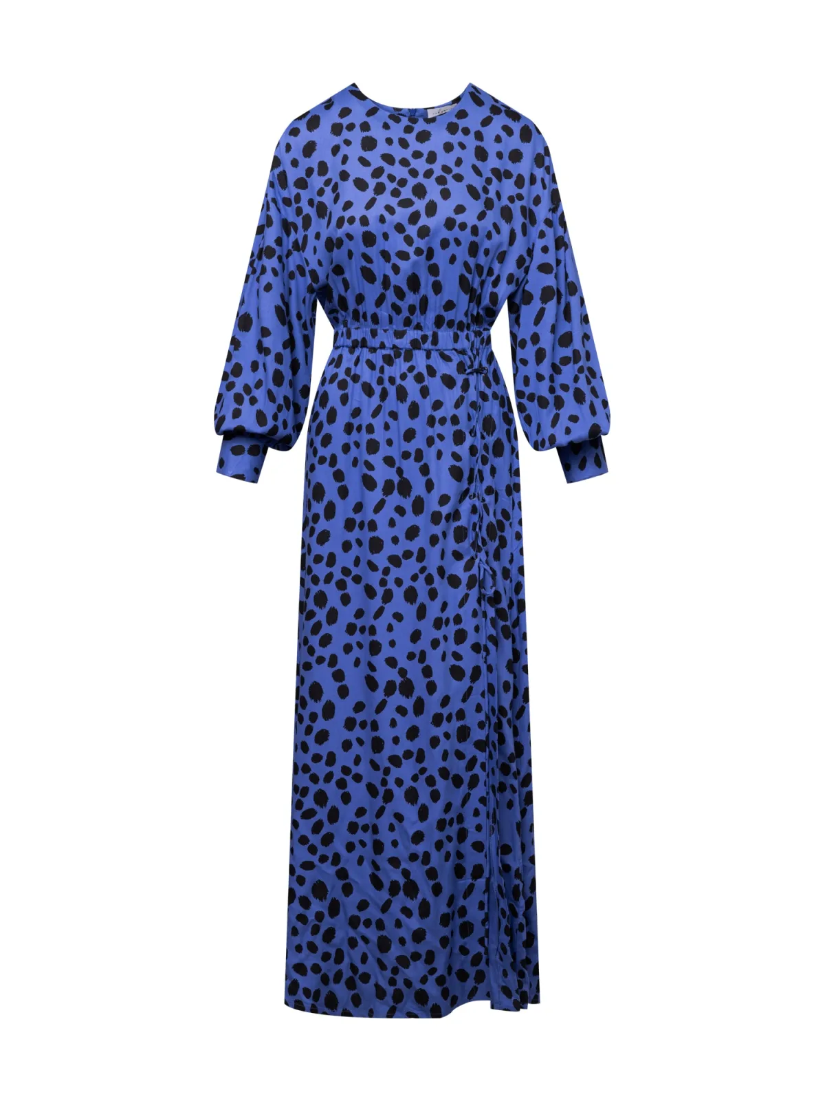 Design: Beenopening, Rug rits; Type sluiting: Ritssluiting; Materiaal: Viscose; Halstype: Ronde hals; Details: Gedrapeerd; Extra's: All-over patroon; Lengte: Lang/maxi; Snit: Getailleerd; Pasvorm: Normale pasvorm; Armlengte: Lange mouw