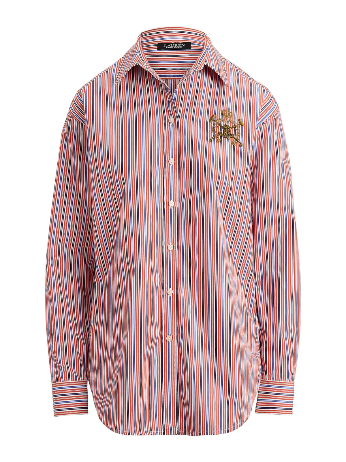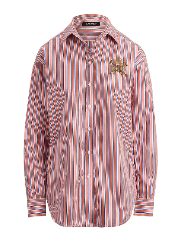 Blouse type: Klassieke blouse; Design: Gevoerde zoom/rand, Ronde zoom, Overcut schouder, Turn-down kraag; Type sluiting: Knoopsluiting; Materiaal: Katoen; Motief: Gestreept; Kraag: Kentkraag; Details: Borduursels; Extra's: All-over patroon, Label borduurwerk, Voelt zacht aan; Pasvorm: Losse pasvorm; Armlengte: Lange mouw; Lengte: Normale lengte