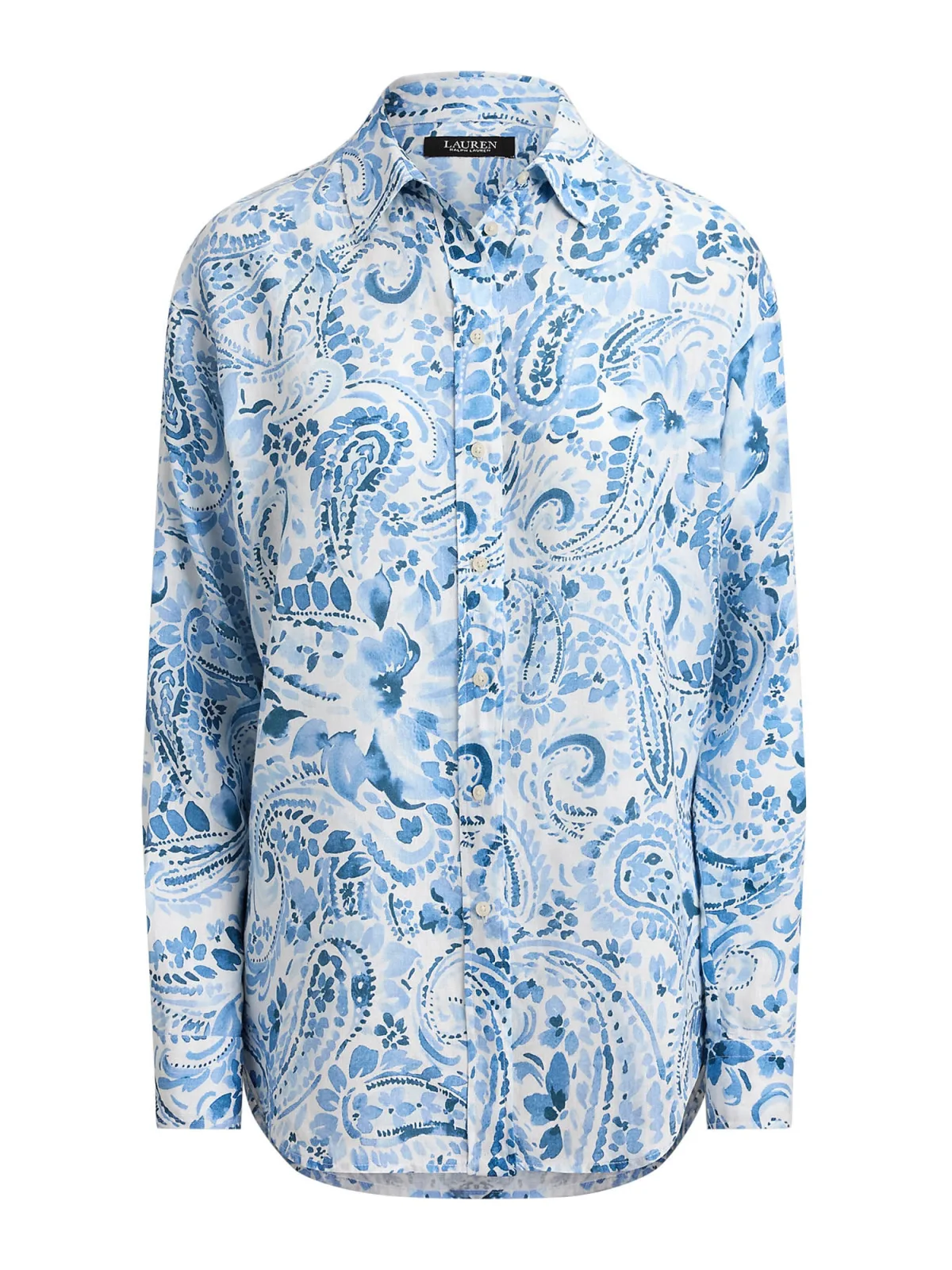 Blouse type: Klassieke blouse; Design: 1-knoops manchetten, Gevoerde zoom/rand, Placket, Ronde zoom, Turn-down kraag; Type sluiting: Knoopsluiting; Materiaal: Linnen; Motief: Paisley; Kraag: Kentkraag; Extra's: All-over patroon, Lichte stof; Pasvorm: Normale pasvorm; Armlengte: Lange mouw; Lengte: Lange pasvorm