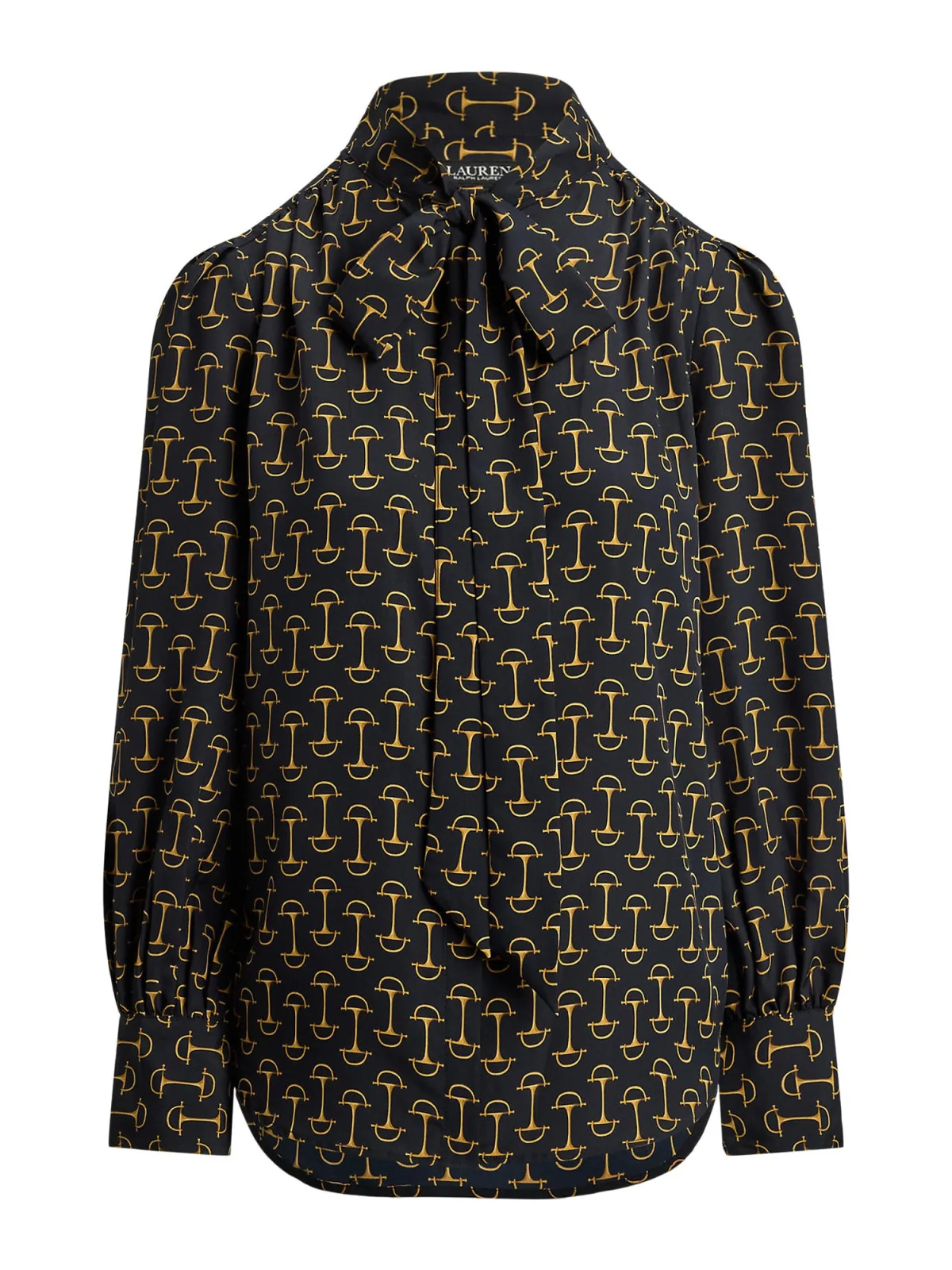 Damesblouse met lange mouwen van Lauren Ralph Lauren;Model 'Klaryce';Look: effen, all-over motief;Pasvorm: Regular fit ;Kraagmodel: Opstaande kraag met bindstrikje;Motief: All-over motief;Applicatie: Labelstitching;Details: Achterpas ;Sluiting: blinde knoopsluiting;Mouwvorm: lange mouwen;Mouwboord: Manchet;Rompzoom: afgerond;Materiaalverwerking: Satijn
