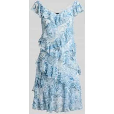 dames cocktailjurk van Lauren Ralph Lauren;look: all-over motief;Pasvorm: Flatteus;lengte: knielang;hals: V-hals;Details: volants;mouwvorm: korte mouw