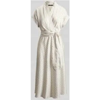 Dames overhemdjurk van Lauren Ralph Lauren;look: all-over motief;pasvorm: getailleerd;Lengte: midi;hals: V-hals;Patroon: gestreept;Details: strikceintuur;kraagmodel: overhemdkraag;mouwvorm: korte mouw