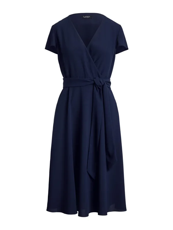 Dames jurk van Lauren Ralph Lauren;Look: wikkellook;pasvorm: getailleerd;hals: V-hals;Details: strikceintuur;mouwvorm: korte mouw