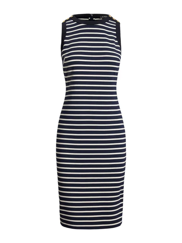 dames vrijetijdsjurk van Lauren Ralph Lauren;look: all-over motief;pasvorm: nauwsluitend;Details: knopen bij de schouder;hals: ronde hals;Mouwvorm: mouwloos