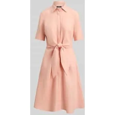 Dames overhemdjurk van Lauren Ralph Lauren;look: effen;Pasvorm: regular fit;detail: strikbandjes in de taille;kraagmodel: overhemdkraag;Lengte: Knielang;mouwvorm: korte mouw;Sluiting: enkelrijige knoopsluiting;Materiaal: puur linnen
