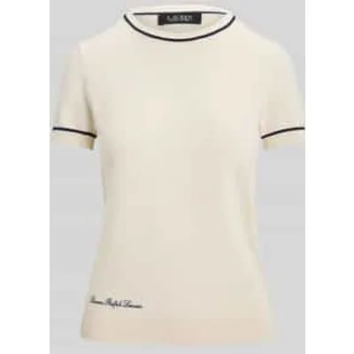 dames gebreide pullover van Lauren Ralph Lauren;look: tweekleurig;Pasvorm: regular fit;hals: ronde hals;mouwvorm: korte mouw;Toepassing: Labelstiksel