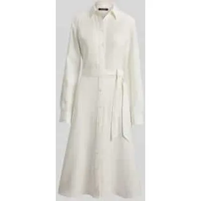 Dames overhemdjurk van Lauren Ralph Lauren;look: effen;pasvorm: getailleerd;Lengte: midi;Sluiting: knoopsluiting;Details: strikceintuur;Materiaal: puur katoen